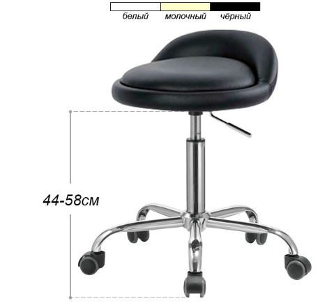 Стілець для майстра з м'яким сидінням у вигляді таблетки та невисоким підйомом у зоні спинки.