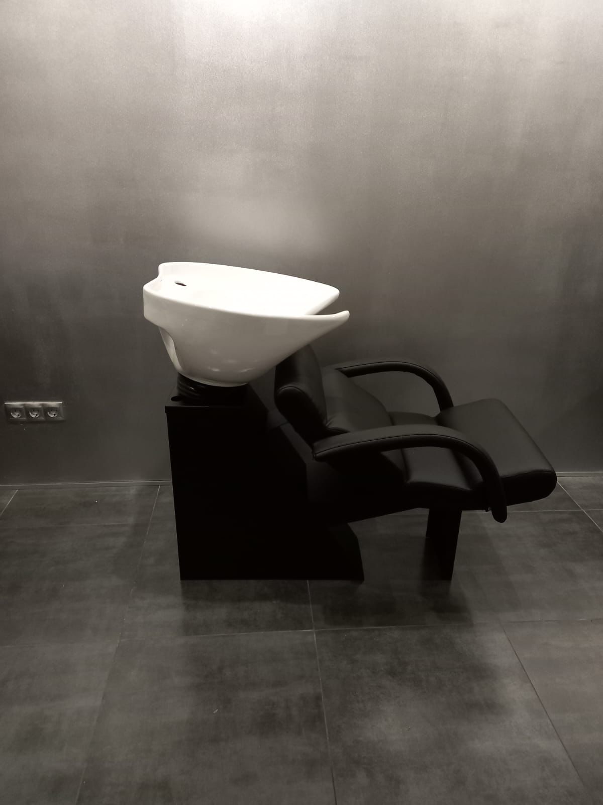 3. Сидіння до мийки в стандарті в чорному кольорі з зручним розсташуванням (є відстань між кріслом та раковиною), що дає можливість добре нахилятися раковині.