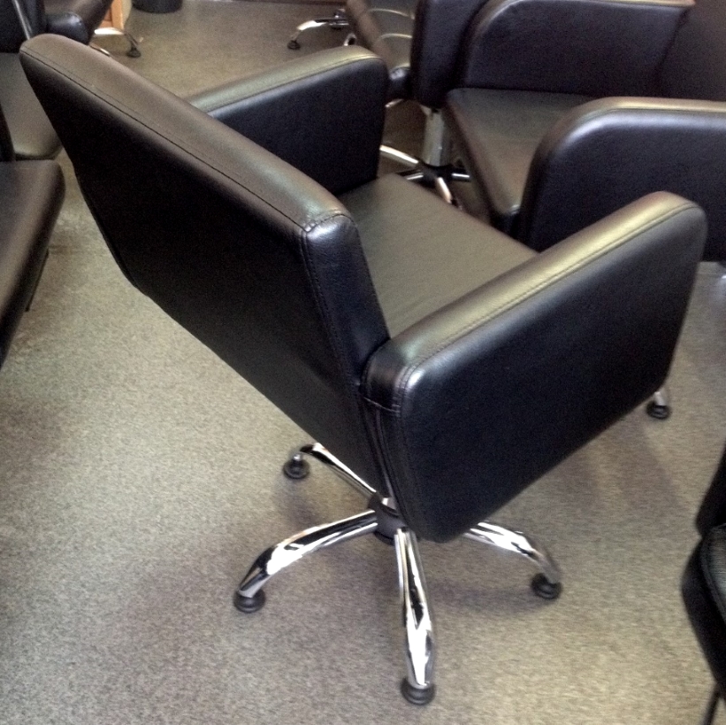 а металевим з'єднанням по центру, який обтягнутий тим же шкірзамінником. Крісла до мийки робляться напівлежачими для зручності клієнтам,