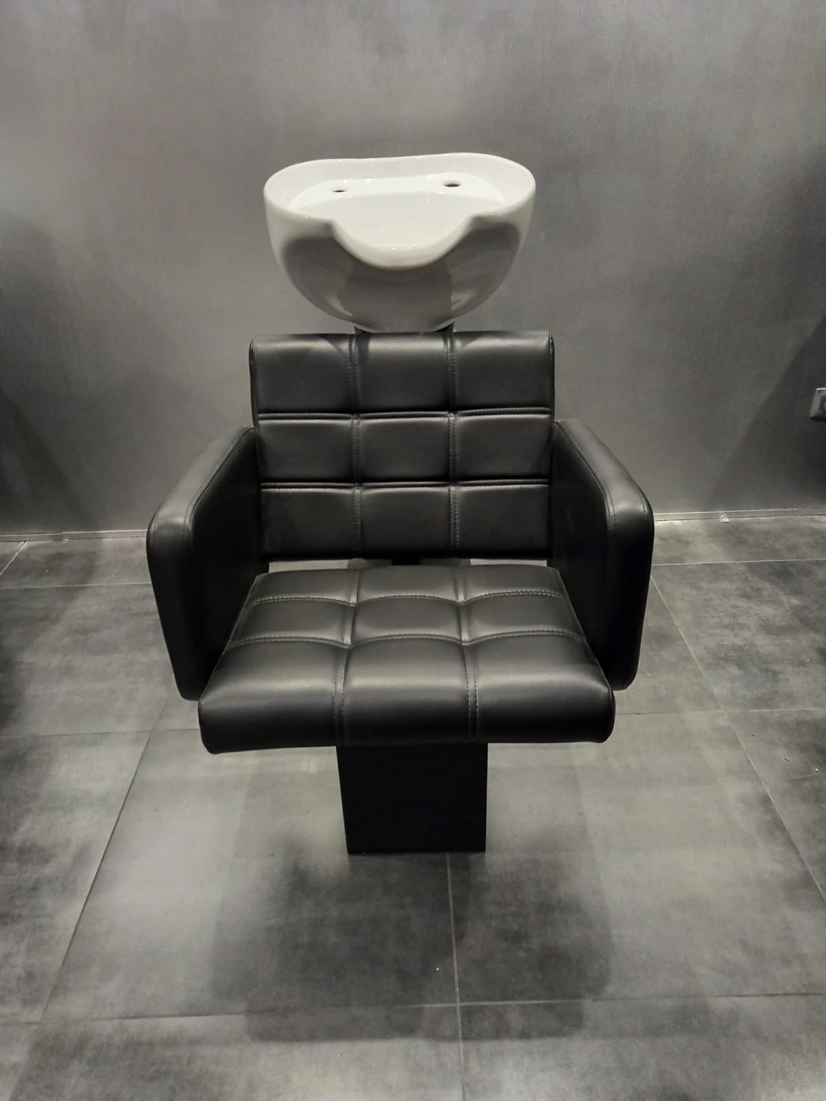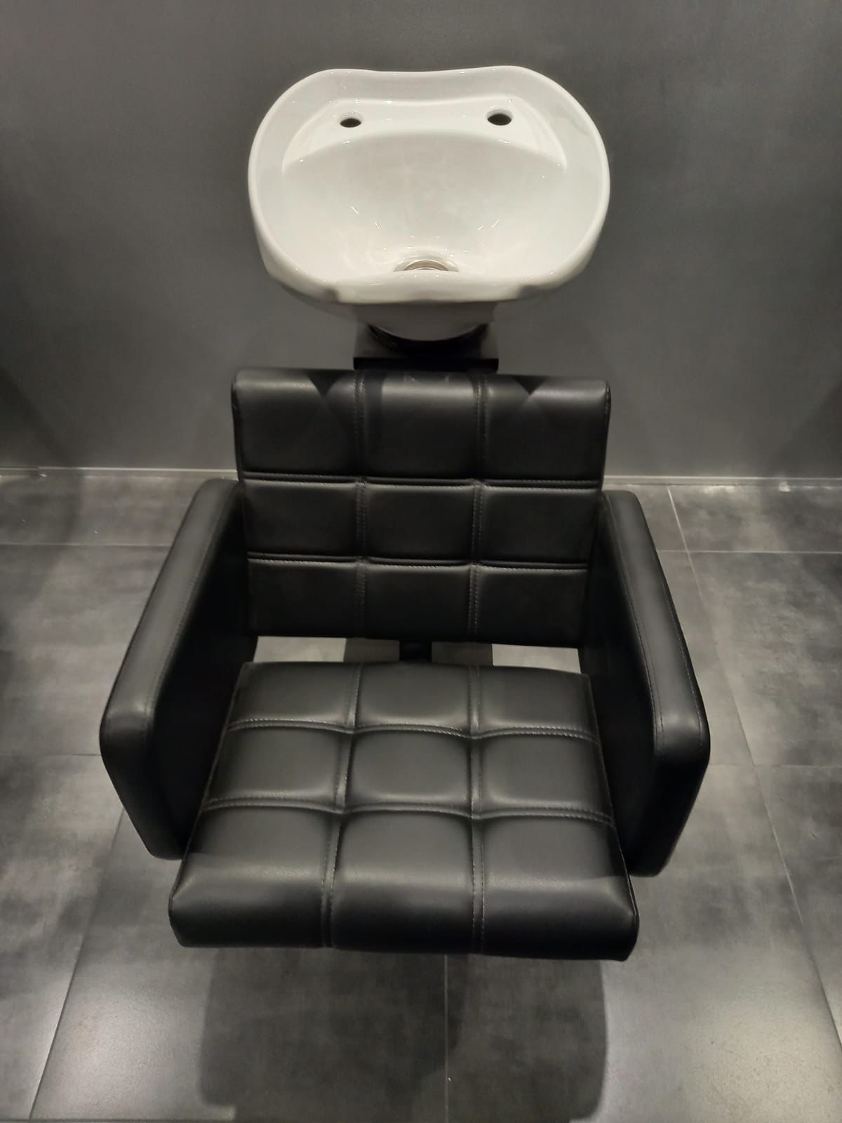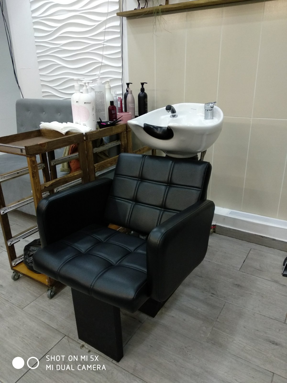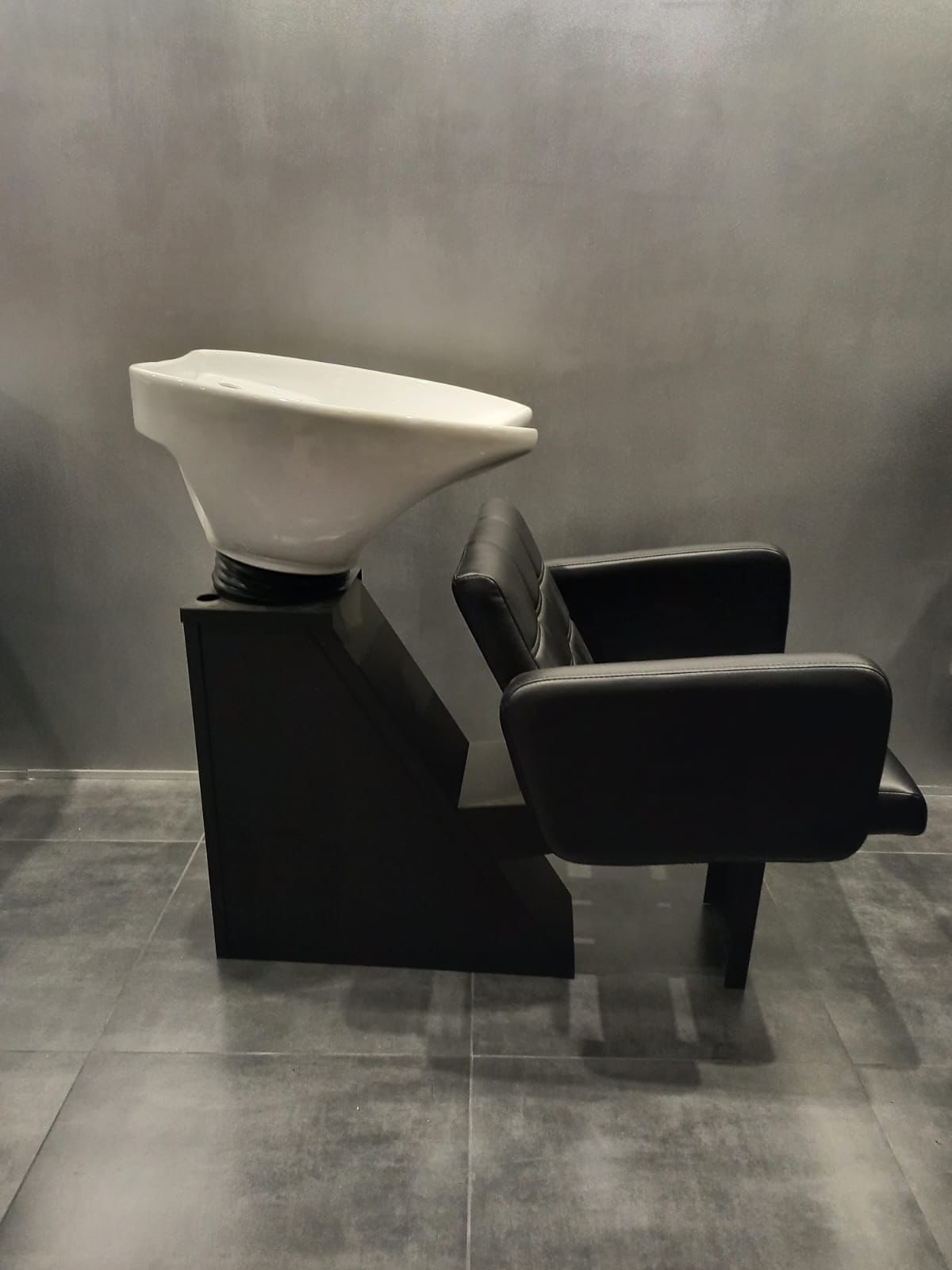 3. Сидіння до мийки в стандарті в чорному кольорі з зручним розсташуванням (є відстань між кріслом та раковиною), що дає можливість добре нахилятися раковині.